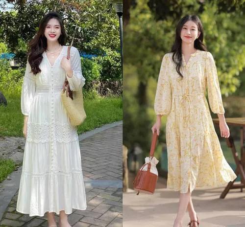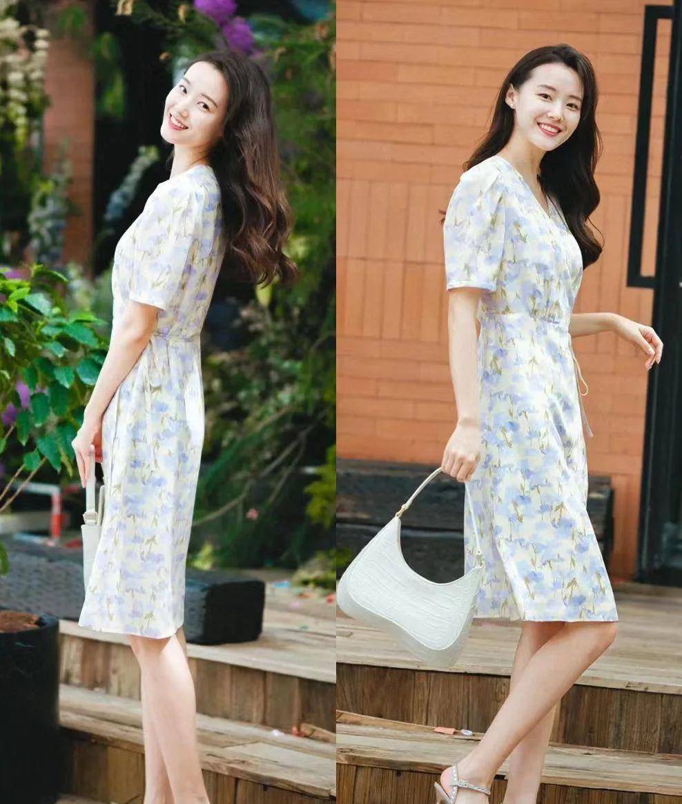花色连衣裙也很受大家喜欢。波点过膝连衣裙有浓浓的法式风格,还有点小性感;印花裙很有特点,选底色淡雅的更容易搭配。要是觉得自己手臂粗,搭配一件薄衬衫,既能防晒又能遮住手臂。