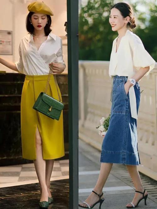 衬衫和半身裙搭配起来也很好看。不管是休闲的牛仔半裙,还是优雅的缎面半裙,配上衬衫都很有设计感,又浪漫又时尚。